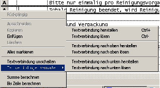 Mit Textverbindung umschalten wird nur der aktuelle Zustand geändert. War die Textzeile zugeordnet, wird Zuordnung getrennt. Ansonsten wird die Zuordnung zu der vorstehenden Positionszeile hergestellt.