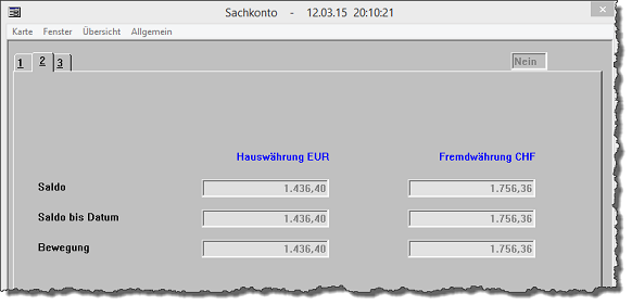 In einer Statistikzunge (Register 2) werden Ihnen die Salden des Sachkontos in Haus- sowie in Fremdwährung übersichtlich dargestellt.