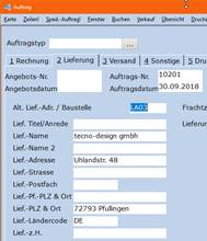 Auf der gleichen Registerkarte können Sie auch eine abweichende Lieferadresse eingeben. Diese kann manuell direkt angegeben oder eine von den beim Kunden gespeicherten alternativen Lieferadressen ausgewählt werden.