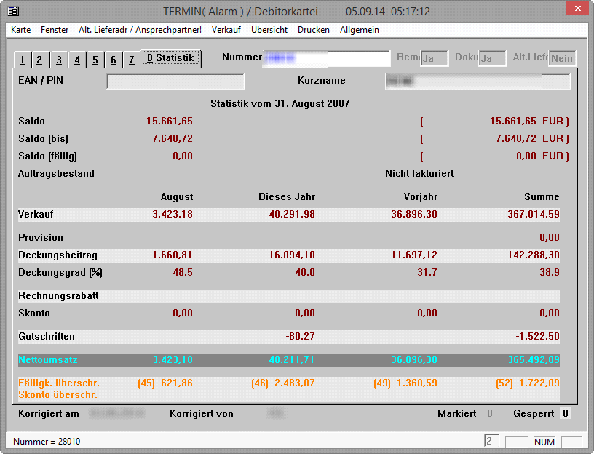 6.5.2. Registerkarte für Statistiken in der Debitor- und Kreditorkartei