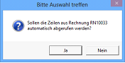 Wenn Sie nun das Feld Ausgleichsnr. mit der TAB- oder Enter-Taste verlassen, werden Sie gefragt, ob Sie die Zeilen aus der betroffenen Rechnung abrufen wollen. Beantworten Sie diese Frage mit Ja.