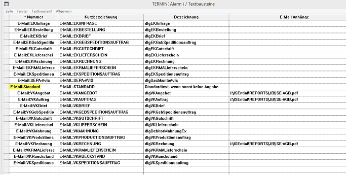 Die genannten Bereiche können Sie selbstverständlich um weitere Bereiche erweitern und somit Textbausteinvorgaben für jeden beliebigen Bericht hinterlegen, den Sie per E-Mail mit einer Textvorgabe versenden wollen.