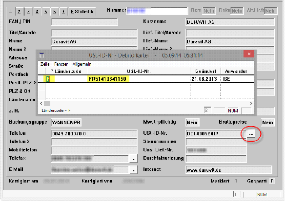 Somit können Sie in den Stammdaten des Debitors alle notwendigen Informationen bezüglich unterschiedlicher Umsatzsteueridentifikationsnummern verwalten. Später können Sie vorgangsbezogen die gewünschte Umsatzsteueridentifikationsnummer auswählen.